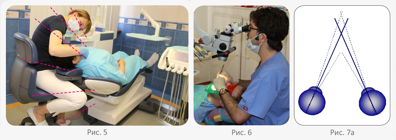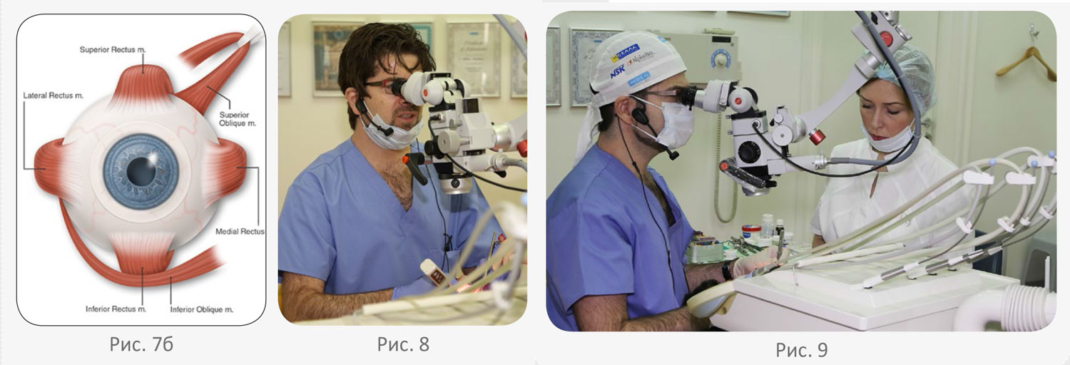 Without a microscope, the eyes must constantly converge on a near object, causing sustained contraction and tension of the medial rectus muscle. Over time, this leads to fatigue and makes it harder for the dentist to concentrate (Fig. 7).